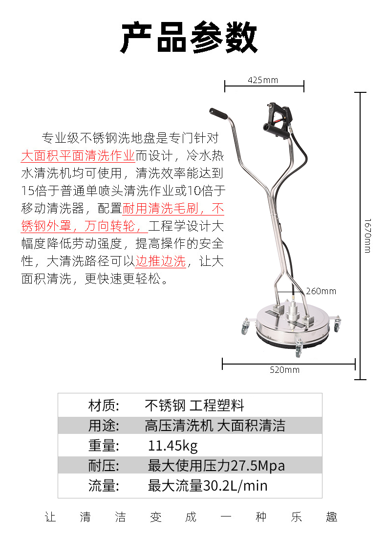 22英寸不锈钢高压清洗机表面清洁剂,适用于压力机设备